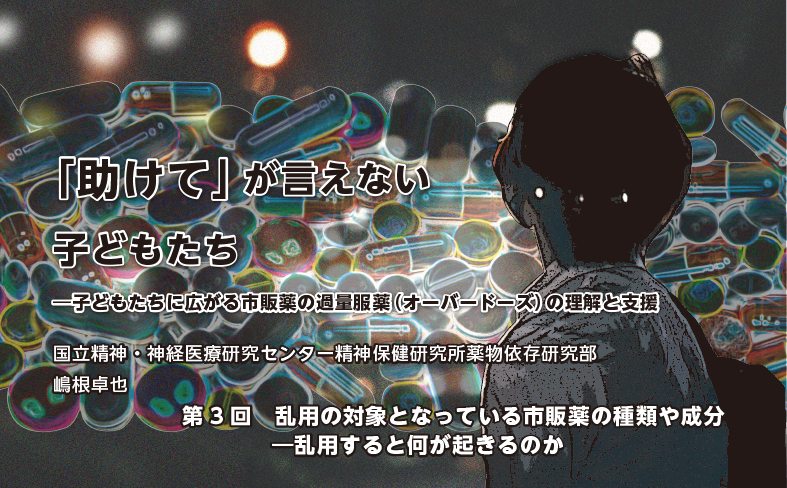 ピックアップ 健康 授業づくり 2024.07.25 「助けて」が言えない子どもたち―子どもたちに広がる市販薬の過量服薬(オーバードーズ)の理解と支援 ③乱用の対象となっている市販薬の種類や成分――乱用すると何が起きるのか 嶋根卓也(国立精神・神経医療研究センター精神保健研究所薬物依存研究部) #保健授業 #授業のヒント