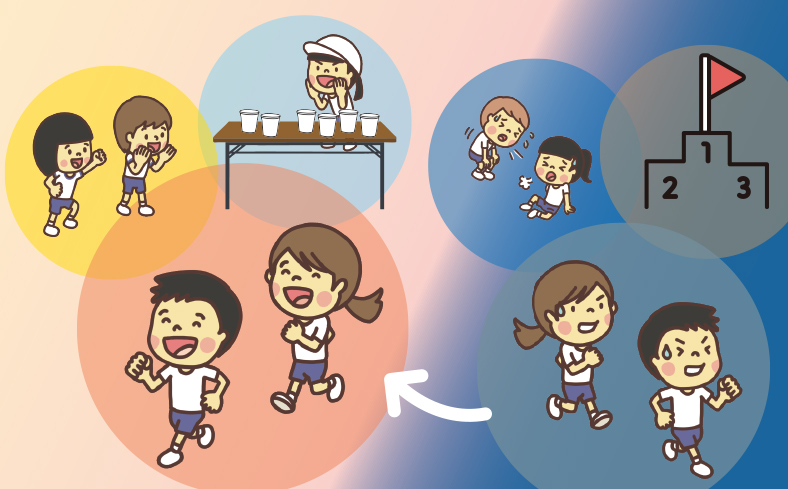 本実践では、ランニング嫌いを生む温床となっていると指摘されることが多い、順位を決めるマラソン大会を止め、走るだけでなく、応援したり、支えたりする、全校によるイベントに改革した取り組みを紹介しています。詳細はぜひ書籍をお読みください。