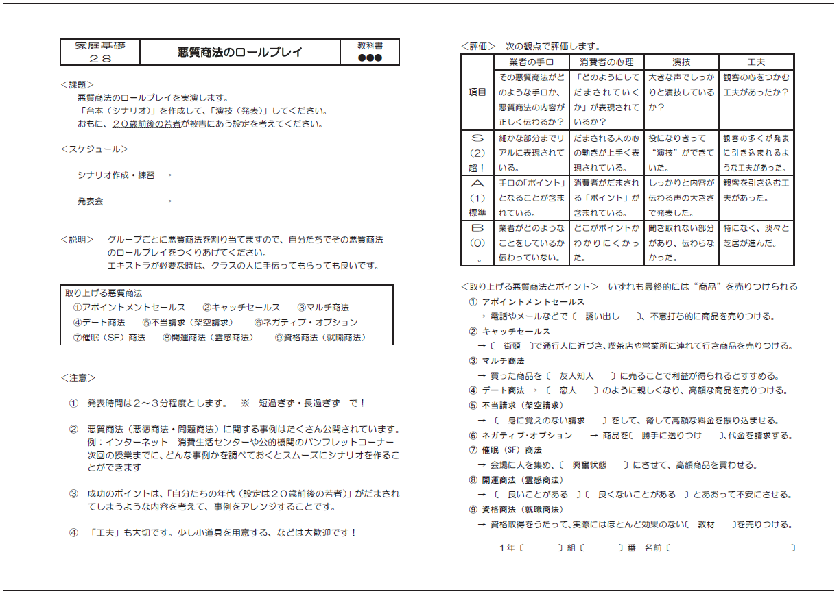 生徒がシナリオを自作する「悪質商法のロールプレイ」の実践